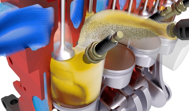 Engine simulations involve moving components, multiphase flow, combustion and heat transfer. You no longer have to be an expert user to simulate internal combustion engines: using an application-specific workflow and simplified interface allows you to set up engine simulations quickly and easily. Expert users can use those simulations as the starting point for performing more complicated multiphysics engine simulations that exploit the full range of Simcenter STAR-CCM+ simulation capabilities.