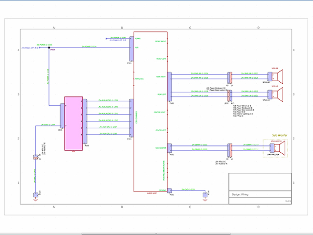 VeSys Design software provides a graphical environment for creating wiring diagrams. Full electrical design authoring is made easy via an intuitive user interface and electrically intelligent symbols. Built-in electrical intelligence automates many design tasks.